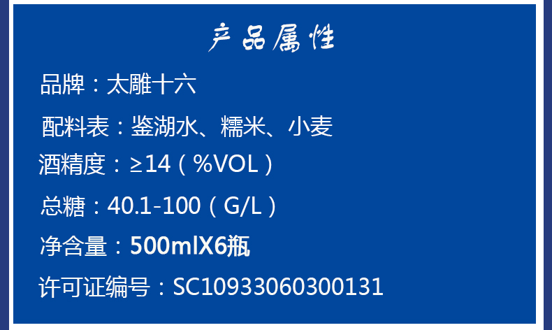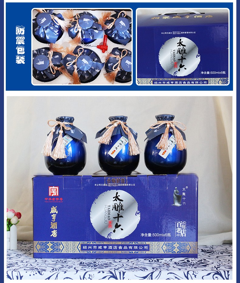 太雕酒太雕十六500mlx6瓶年货礼盒蓝瓶绍兴黄酒糯米老酒