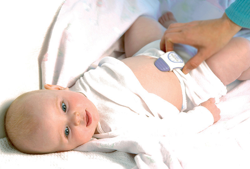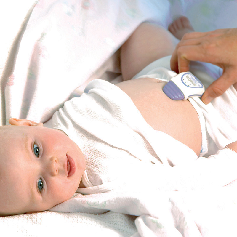 3.确保Hero端正地靠贴尿布上,并使感应尖端保持接触于婴儿的肚皮。
