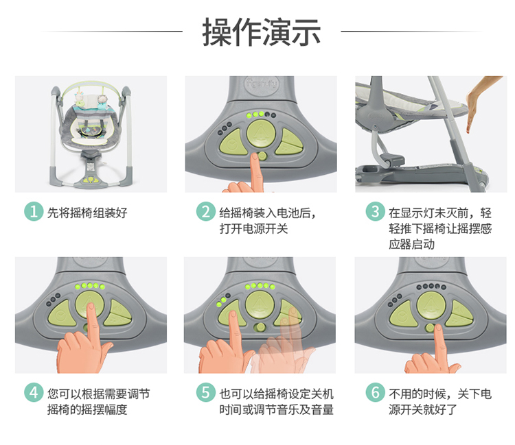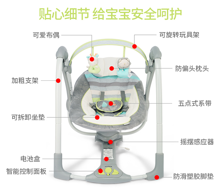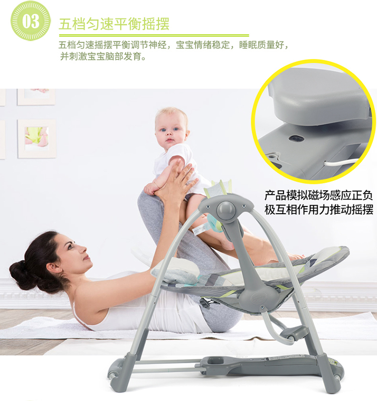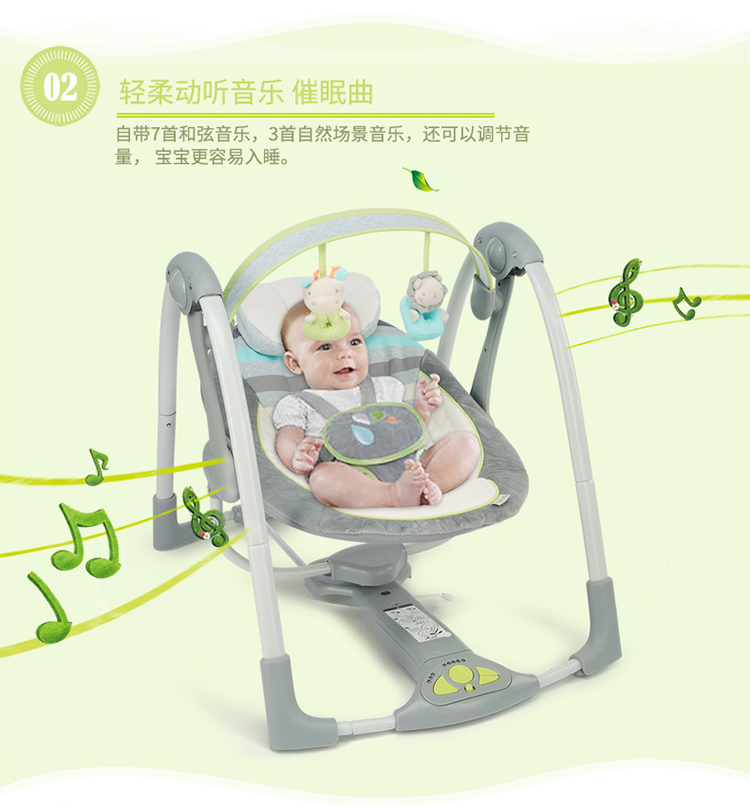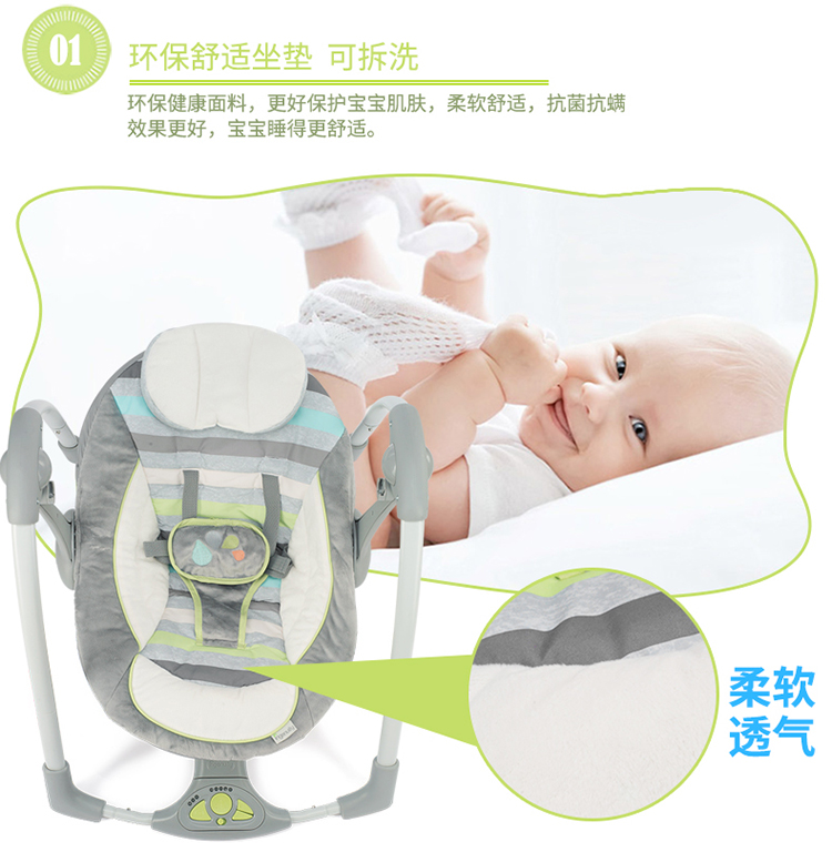 Ingenuity婴儿电动摇椅宝宝安抚躺椅磁感静音摇篮哄娃哄睡觉神器