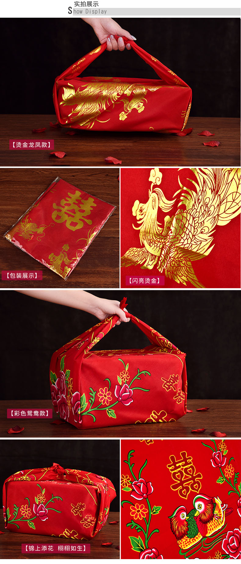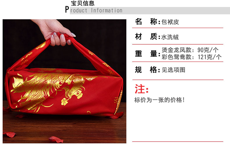 H33 厚款包袱皮婚庆用品婚礼包袱结婚鸳鸯红新娘人嫁妆喜盆包裹布