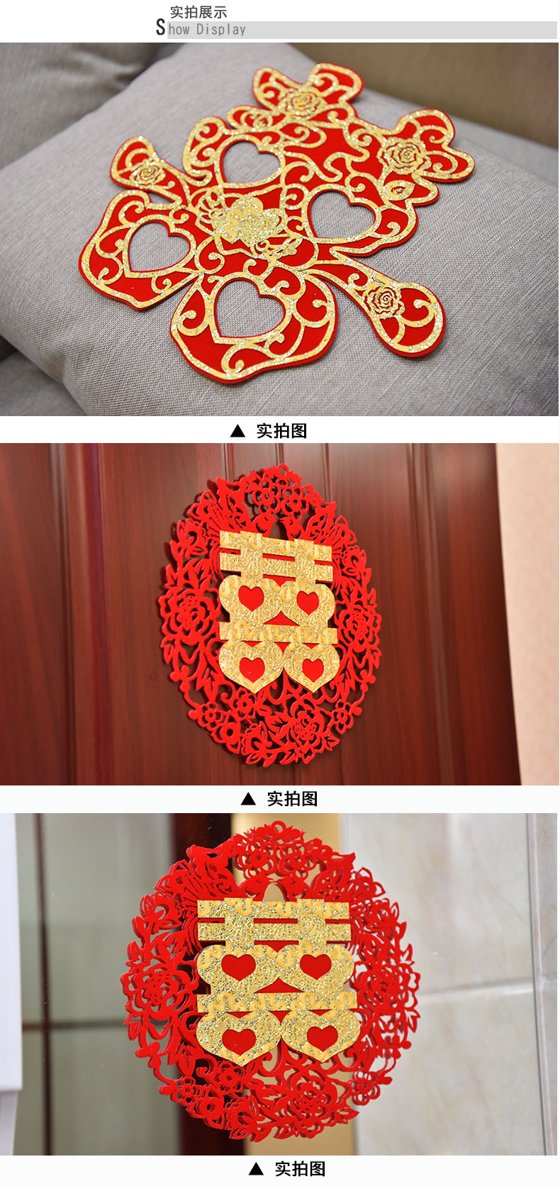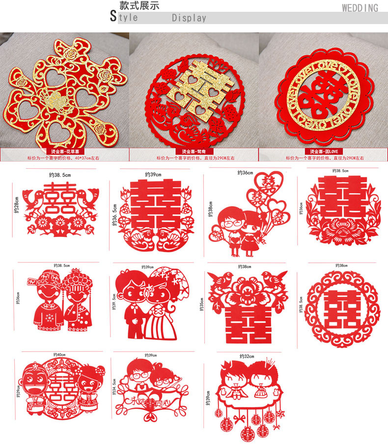 烫金拉花结婚庆用品浪漫创意新房婚房布置婚礼装饰无纺布喜字L09