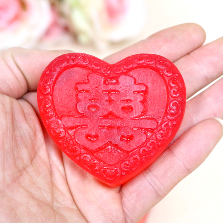 结婚香皂婚庆用品精油香皂桃心形双喜红色香皂肥皂情侣皂香皂