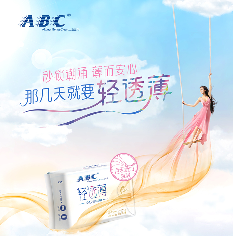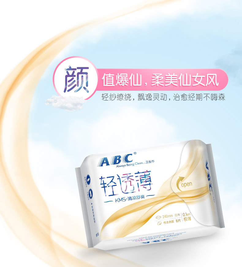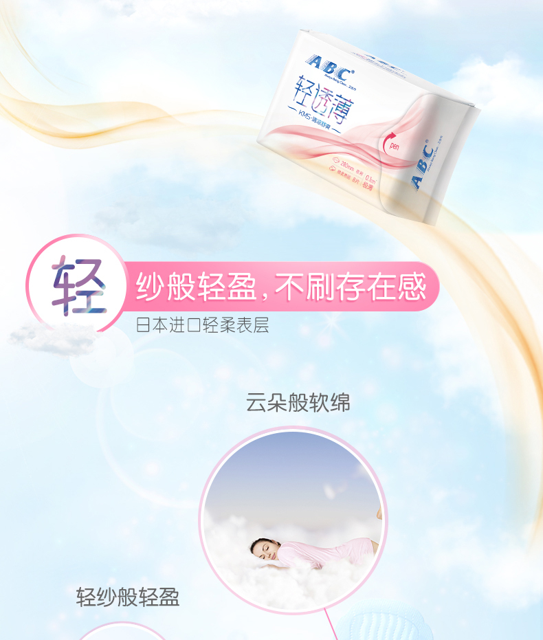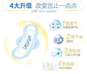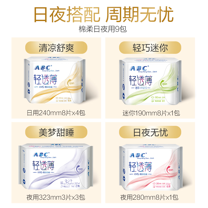 abc卫生巾 棉柔亲肤 日夜用姨妈巾 9包