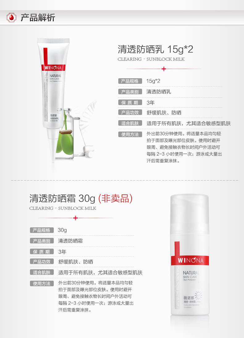 薇诺娜防晒霜套装 敏感肌全身面部防晒乳霜