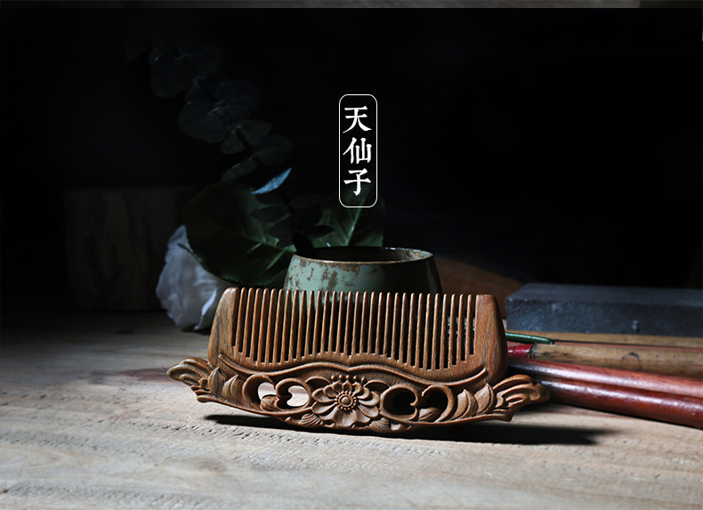 【女神节】周广胜天然雕花绿檀木梳子防静电细齿小号便携礼品梳