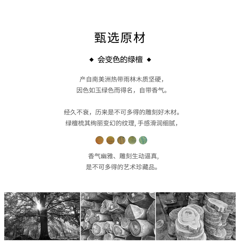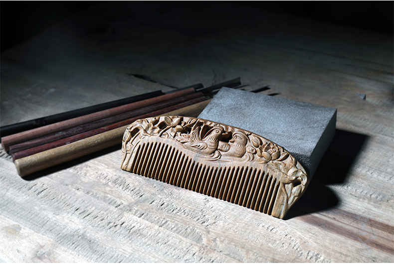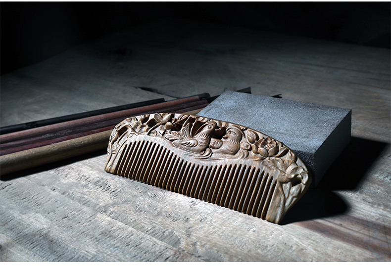 周广胜木梳天然雕花绿檀木梳子细齿自用梳创意礼物