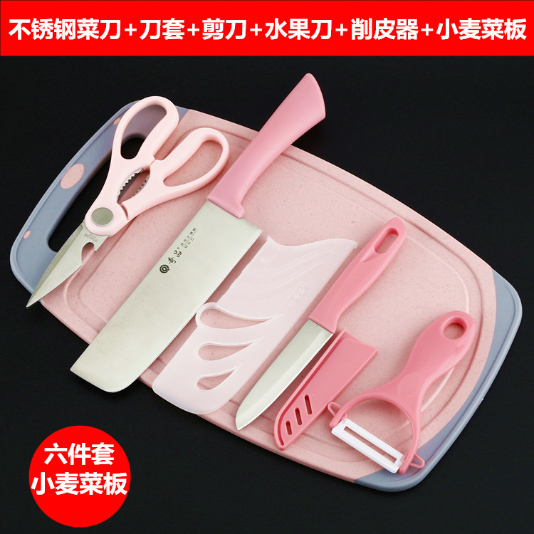 小麦秆菜板不锈钢小菜刀六件套水果刀砧板