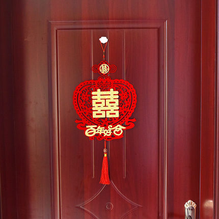 无纺布喜字流苏结婚庆压床头喜字门贴窗花剪纸套喜婚礼房装饰L08