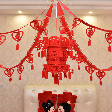 婚房装饰布置拉花 结婚用品婚庆拉花新房房顶婚礼喜字无纺布房顶