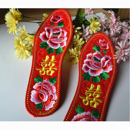 婚庆新人用品 结婚布鞋垫防汗除臭印绣花脚垫传统手工刺绣H04